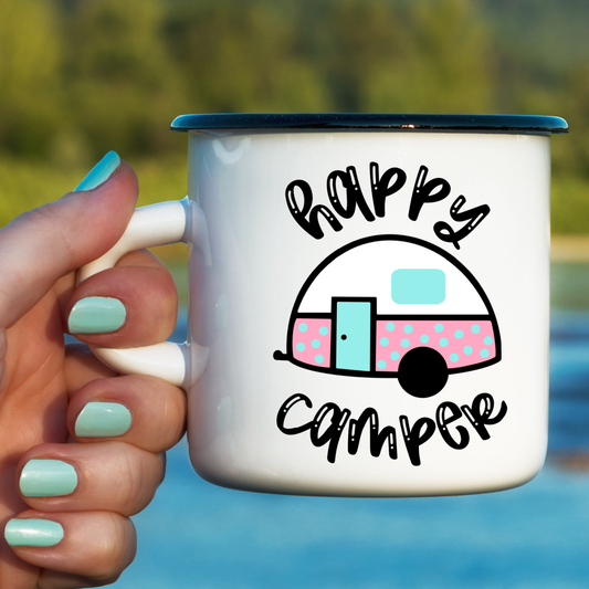 Happy Camper with Cute Vintage Trailer SVG Cut File and PNG