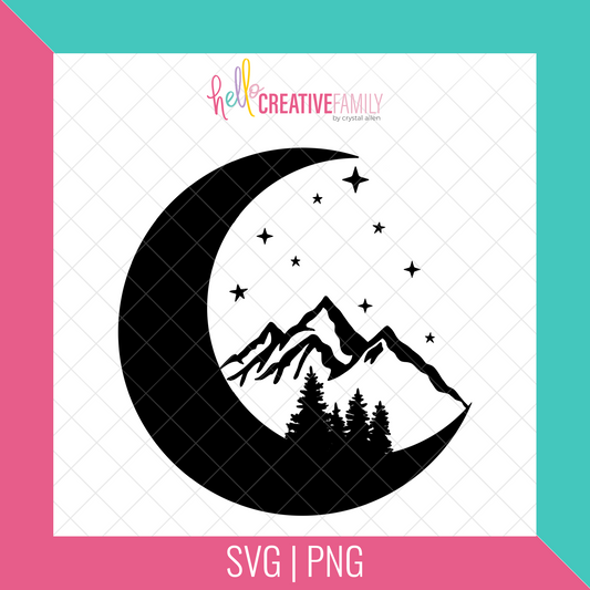 Moon, Mountain, Forest & Stars SVG Cut File and PNG Bundle