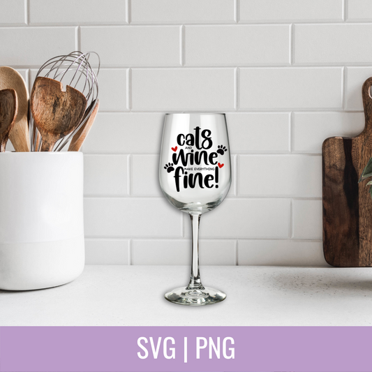 Cats and Wine Make Everything Fine SVG and PNG Cut file