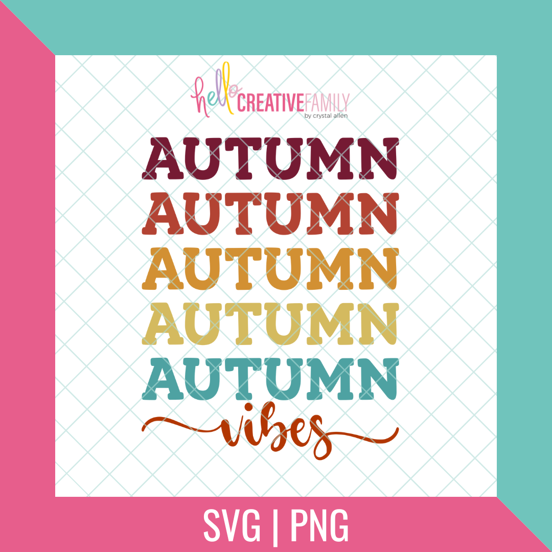Use this "Autumn Vibes" cut file with your Cricut Maker, Cricut Explore, Cricut Joy, Silhouette Cameo, or other machines that use these types of files to make DIY shirts, mugs, tote bags and more!