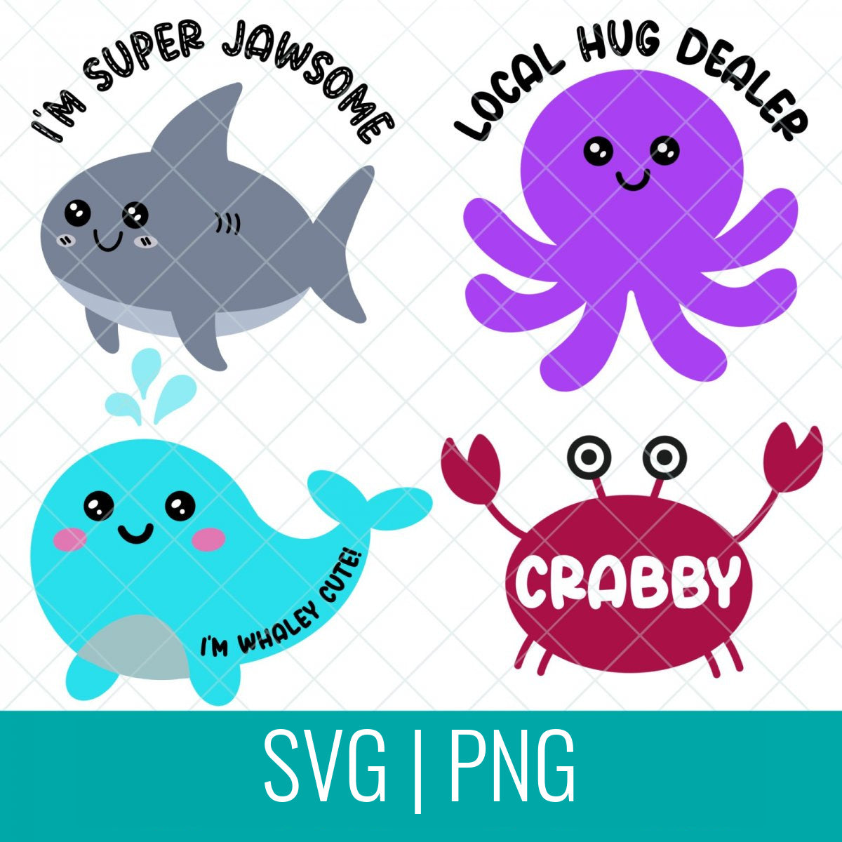Cute Kawaii Ocean Animals Bundle SVG Cut File and PNG