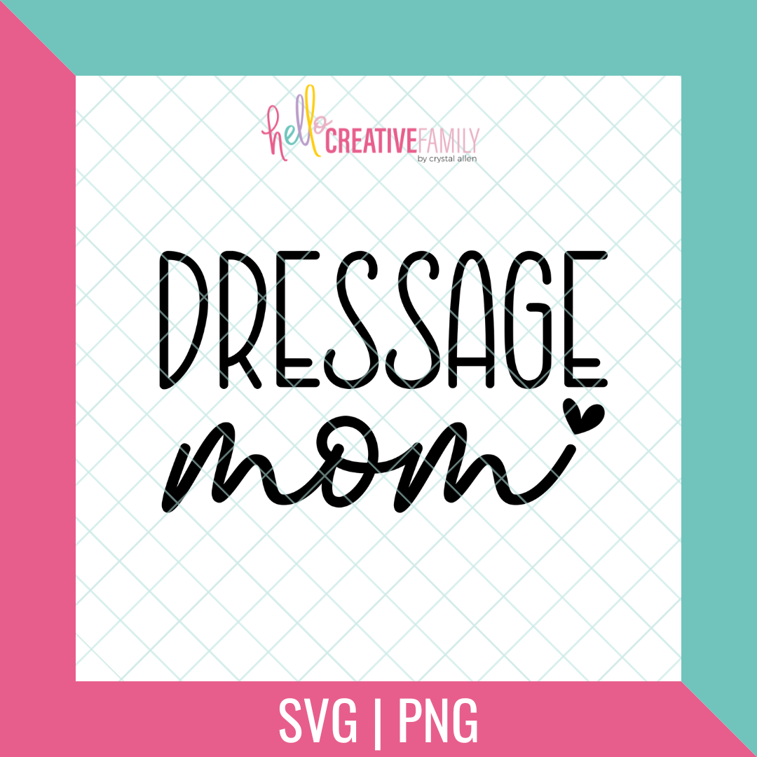Show off your Dressage Mom pride! Use this SVG cut file and PNG with your Cricut Maker, Cricut Explore, Cricut Joy, Silhouette Cameo, or other machines that use these types of files to make DIY shirts, mugs, tote bags and more!