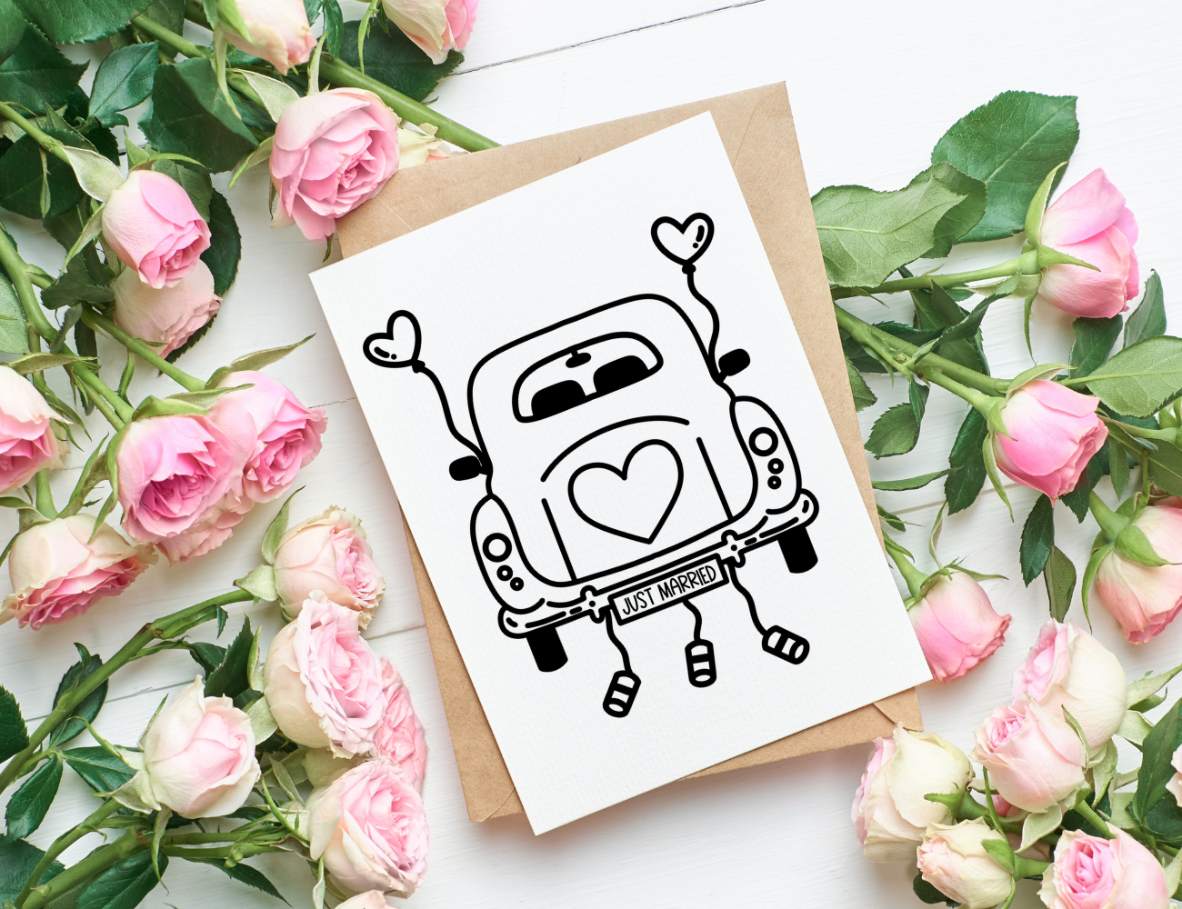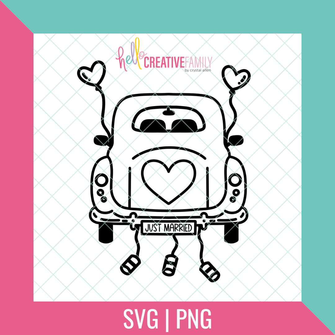 Use this adorable Just Married Vintage Car SVG cut file with your Cricut Maker, Cricut Explore, Cricut Joy, Silhouette Cameo, or other machines that use these types of files to make DIY gift bags, cards, tote bags and more!