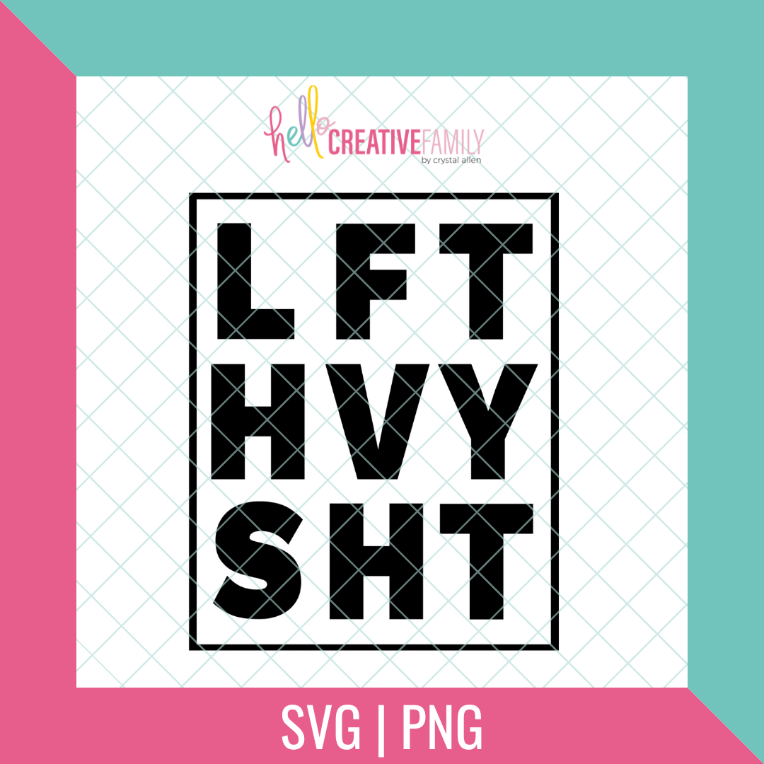 Use this Lift Heavy Shit (LFT HVY SHT) cut file with your Cricut Maker, Cricut Explore, Cricut Joy, Silhouette Cameo, or other machines that use these types of files to make DIY shirts, mugs, tote bags and more!