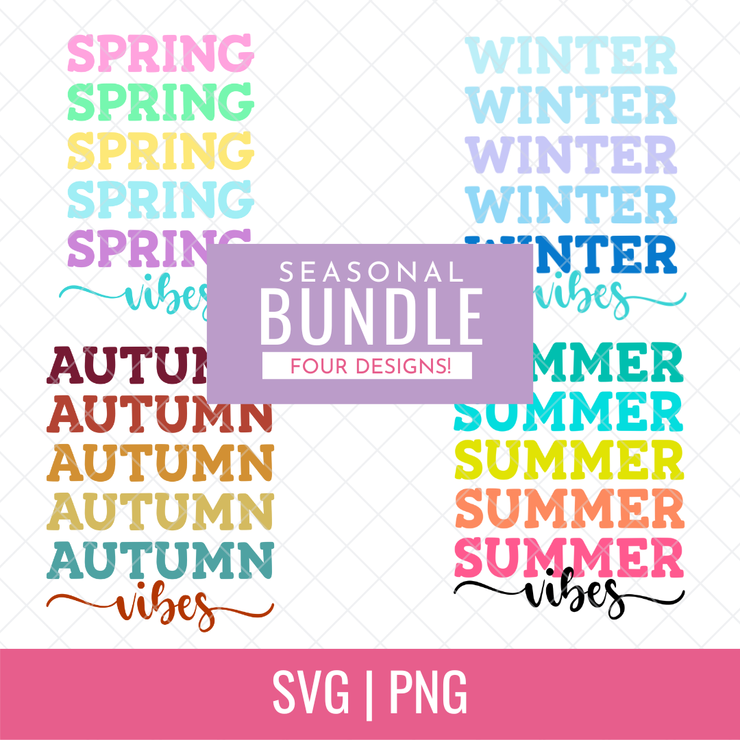 Embrace Every Season with the Vibes Cut File Bundle! Get ready to celebrate every chapter of the year with this versatile cut file bundle featuring four seasonal designs.