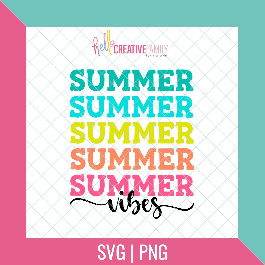 Use this Summer Vibes SVG cut file with your Cricut Maker, Cricut Explore, Cricut Joy, Silhouette Cameo, or other machines that use these types of files to make DIY shirts, mugs, tote bags and more!